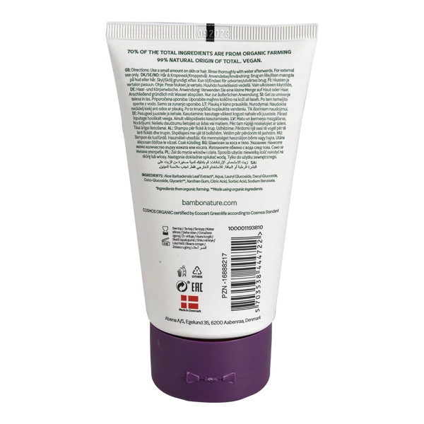 Baby shampoo voor de delicate babyhuid. Met Bambo Nature 2-in-1 wasgel is het een feest om in bad te gaan, zelfs voor baby’s met een zeer gevoelige huid en zachte hoofdhuid. De wasgel houdt je baby schoon, zonder prikkende oogjes. Het product is dermatologisch getest en bevat geen parfum en kleurstoffen. Bambo Nature 2-in-1 wasgel is veganistisch en bevat enkel natuurlijke en plantaardige ingrediënten.De shampoo, voor haar en lichaam, reinigt en voedt de huid. Deze baby shampoo maakt badtijd leuk en gemakkelijk, met een speciaal ontworpen formule, die het haar en de gevoelige hoofdhuid reinigt en de tere ogen van je kind beschermt tegen irritatie.